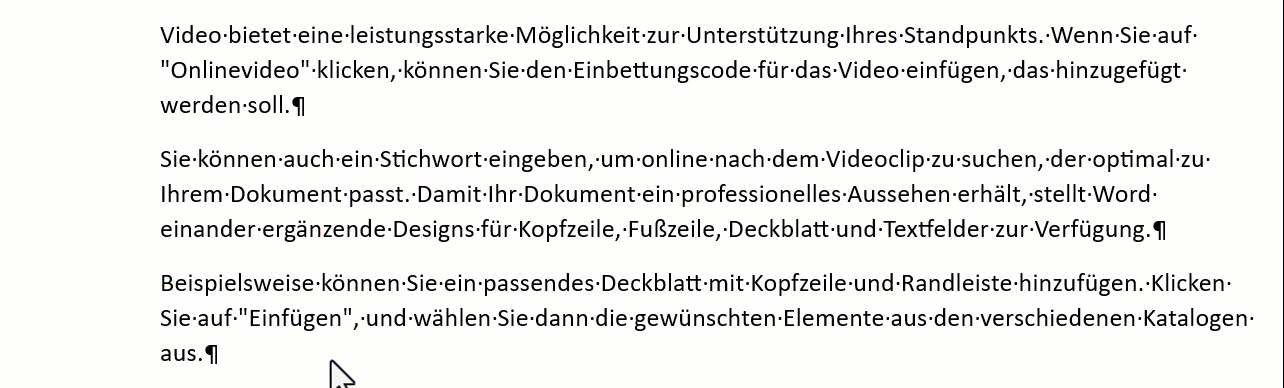 - Klick mit der Maus am Anfang in den Absatz (vor den ersten Buchstaben) und mit gedrückter Maustaste bis am Schluss des Absatzes ziehen (inkl. Absatzmarke)