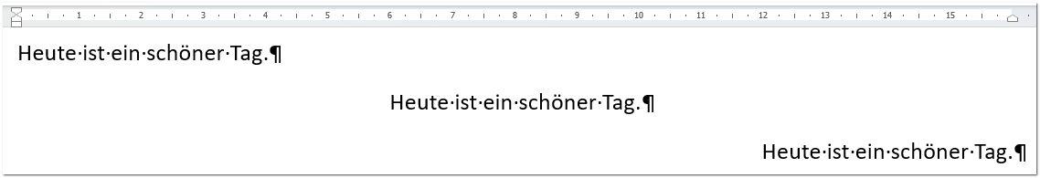 Horizontale Ausrichtung bedeutet, man richtet Absätze „am Horizont“ aus. Das können beispielsweise linksbündig, zentriert und rechtsbündig ausgerichtete Absätze sein: