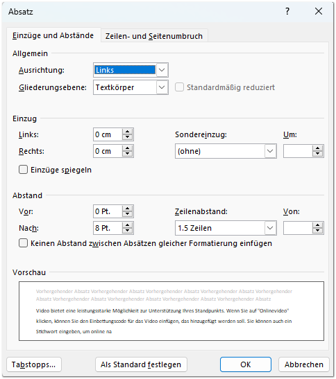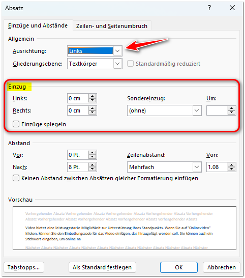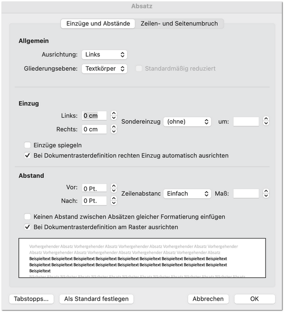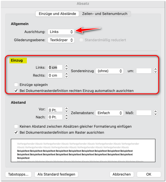Absätze können in zwei Richtungen ausgerichtet werden: