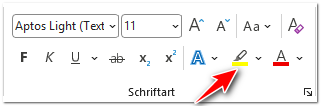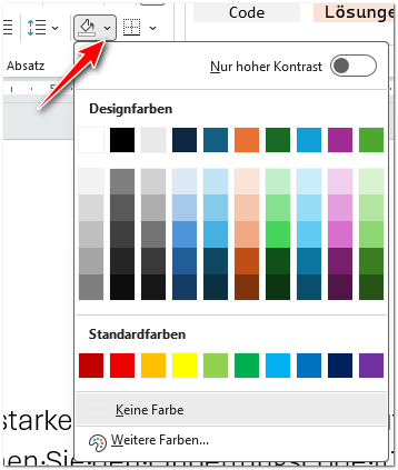 Um einem Absatz eine Hintergrundfarbe zuzuweisen, klicken Sie wie üblich in den Absatz (er muss nicht markiert sein!) und wählen eine Farbe aus, meist durch einen Klick auf den Pfeil rechts des Farbkessels:
