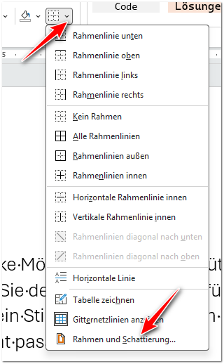 Gelegentlich kommt es vor, dass Sie einem Text eine Hintergrundfarbe (auch „Schattierung“ genannt) oder einen Rahmen in irgend einer Art und Weise zuweisen wollen.
