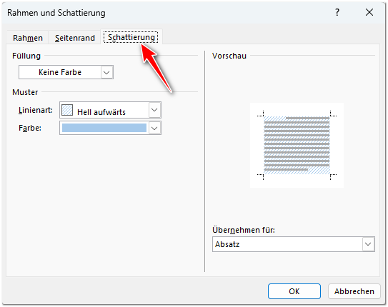 Klicken Sie in diesem Dialogfenster auch mal auf das Register „Schattierung“: