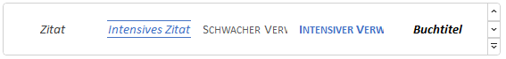 Spätestens bei einer Maturarbeit müssen Sie ausgiebig zitieren. Auch dafür hat Word bereits fertige Formatvorlagen. Diese finden Sie in der dritten Zeile im Katalog: