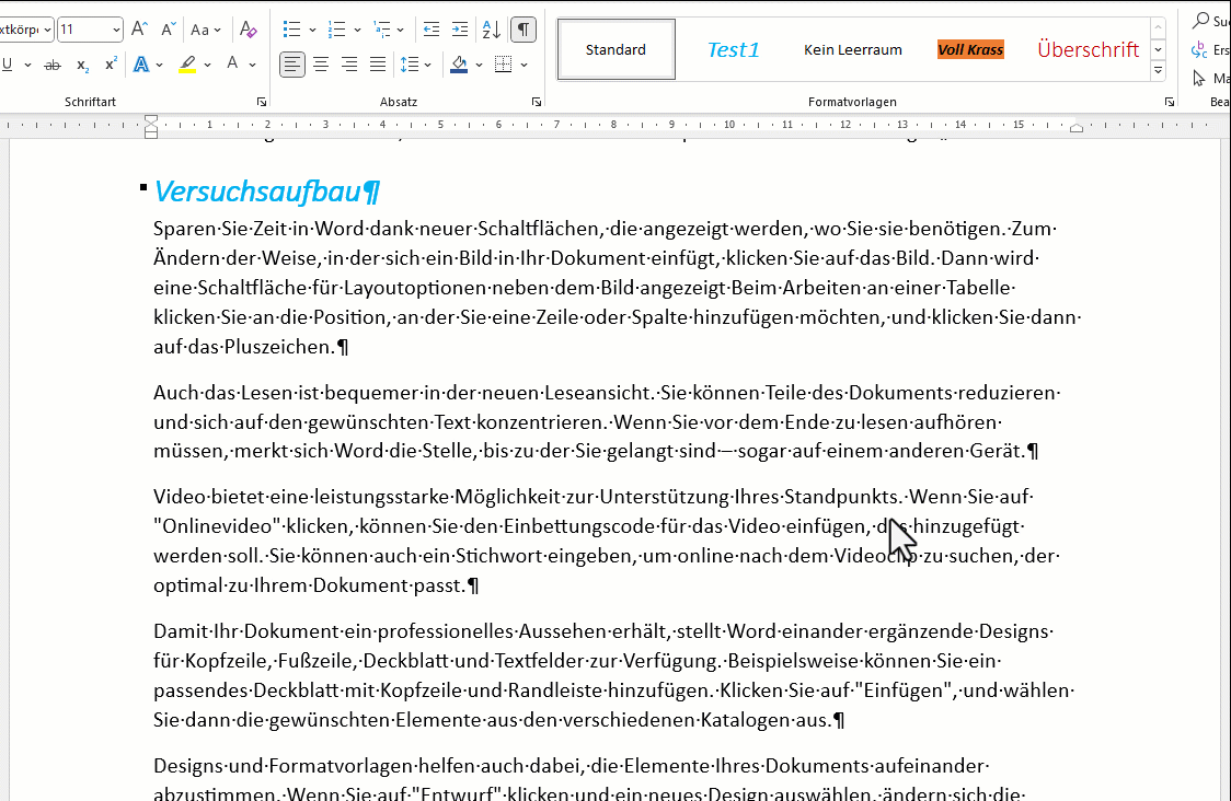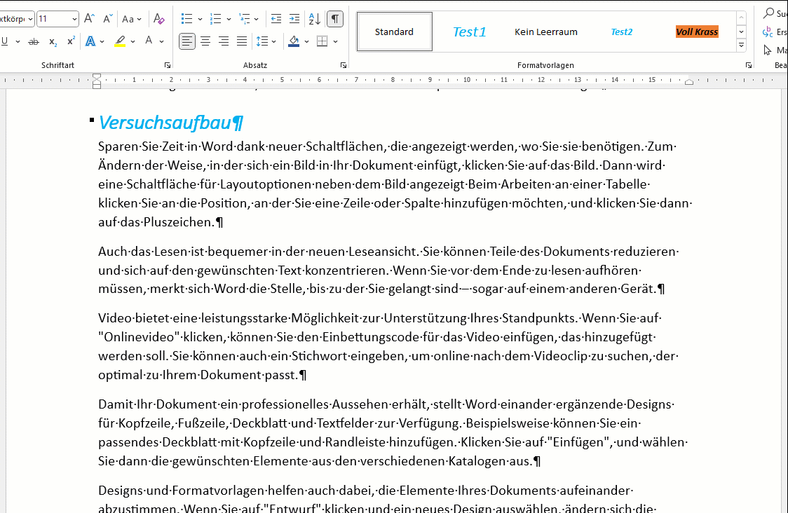 Zuweisen kann man die Formatvorlage dann einem oder mehreren Zeichen. Das heisst, auch einen Wort oder einem ganzen Absatz. Hier eine kleine Demo: