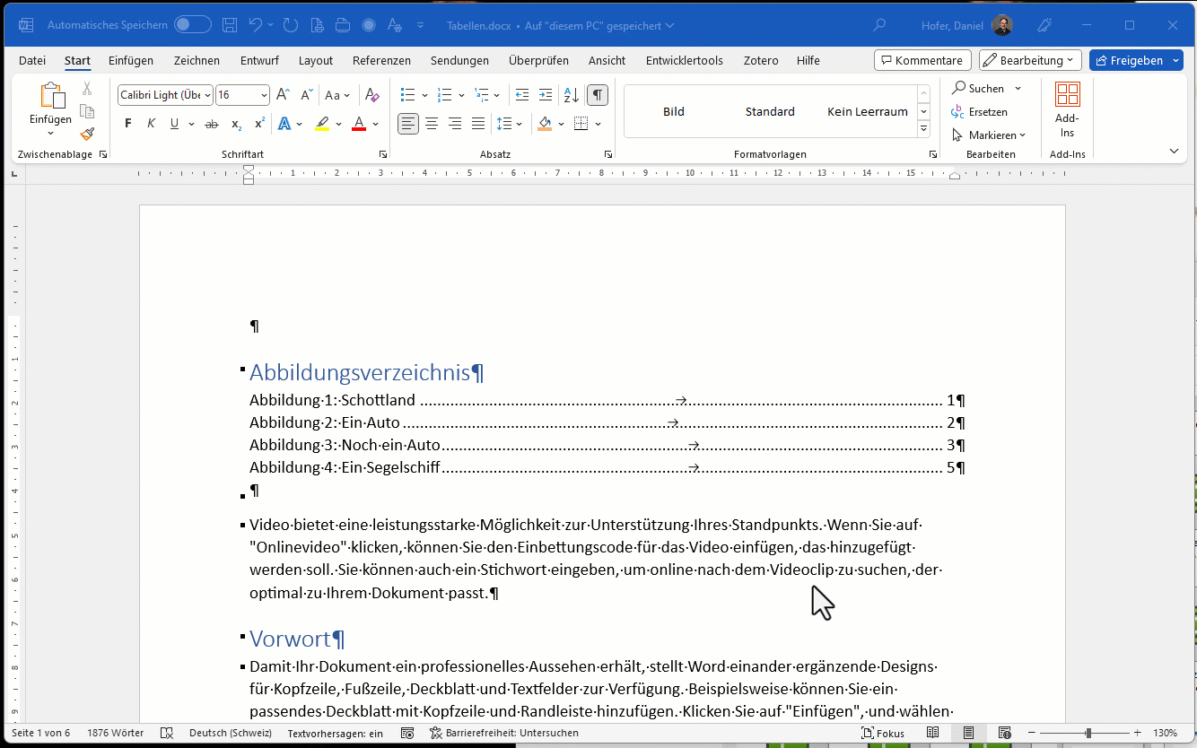 Das Coole an den Formatvorlagen „Überschrift 1“, „Überschrift 2“, etc. ist, dass Sie daraus ein automatisches Inhaltsverzeichnis erstellen können.