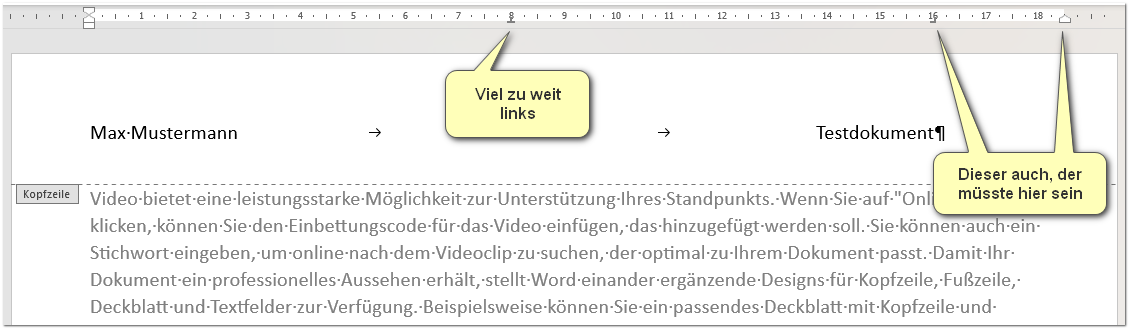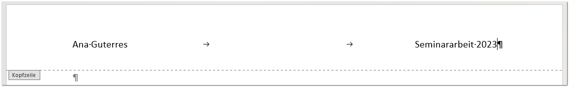 - In der Kopfzeile fügen Sie links Ihren Namen ein und rechtsbündig den folgenden Text: Testdokument