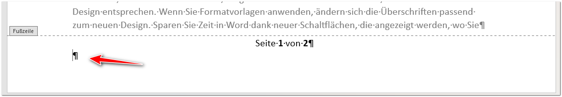 Hinweis dazu: wollen Sie es ganz korrekt machen, weisen Sie der Markierung die Formatvorlage „Fusszeile“ zu.