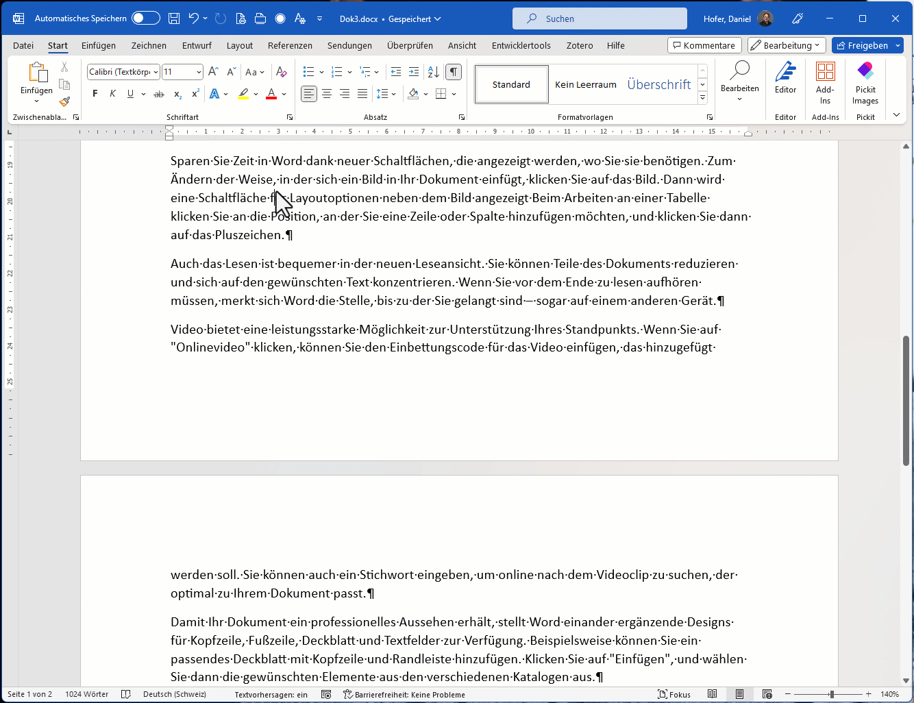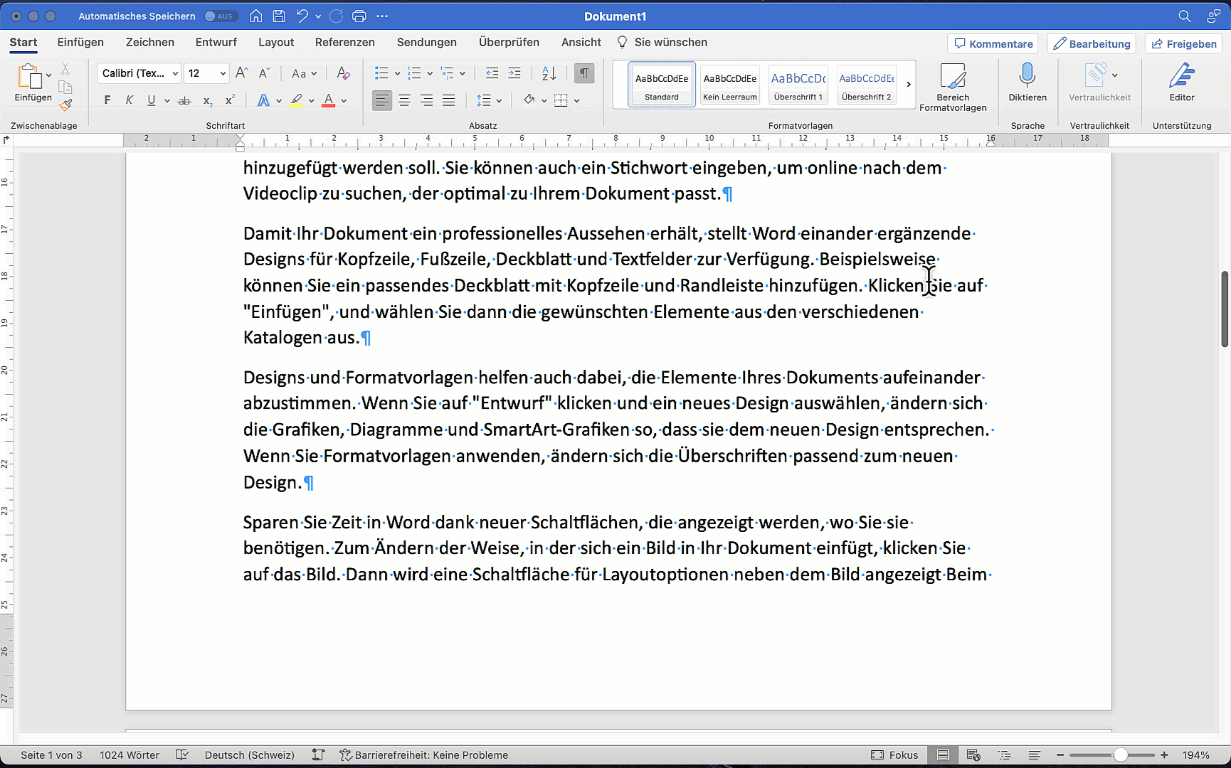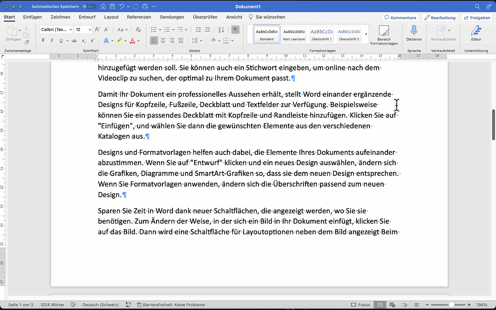 - Zweitens fügt Word am Ende des Bausteins einen leeren Absatz ein