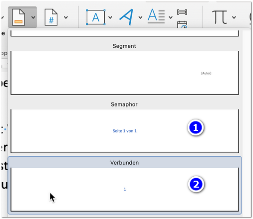 Je nach eingefügter Seitenzahl fügt Word nicht an der aktuellen Cursor-Position eine Seitenzahl als Text ein, sondern als Textfeld. Hier ein paar solcher Bausteine: