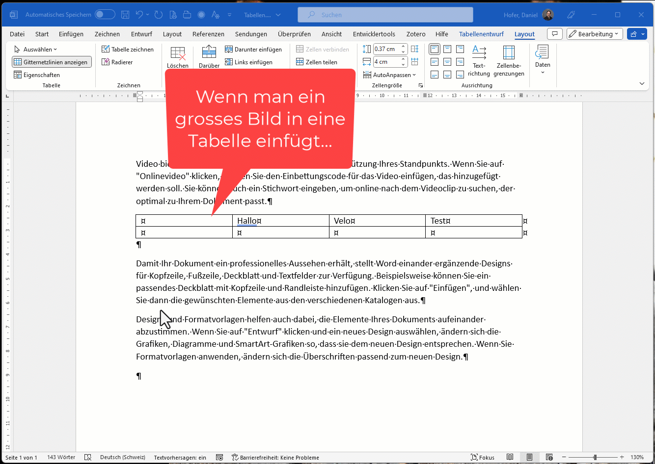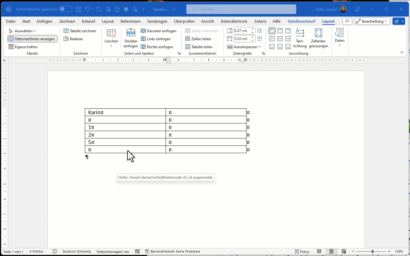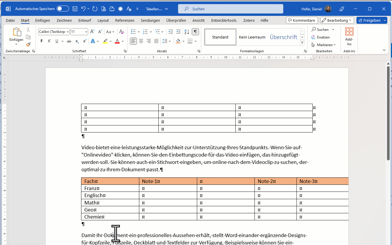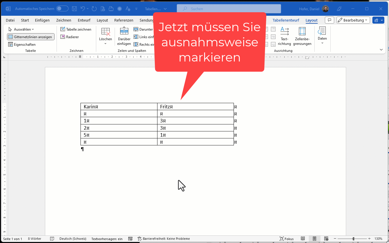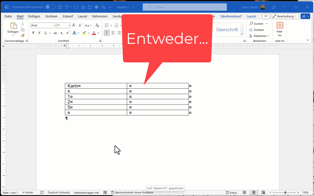 - Verwenden Sie eine Tabelle als Gestaltungselement, dann nehmen Sie Word