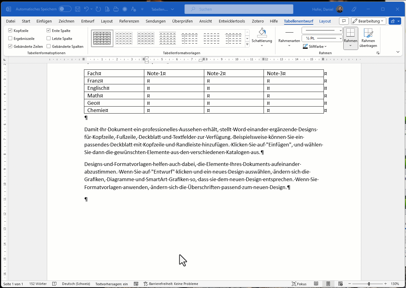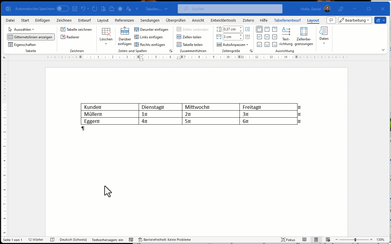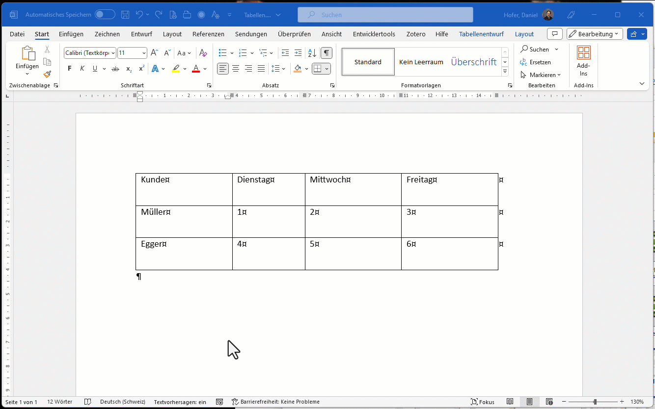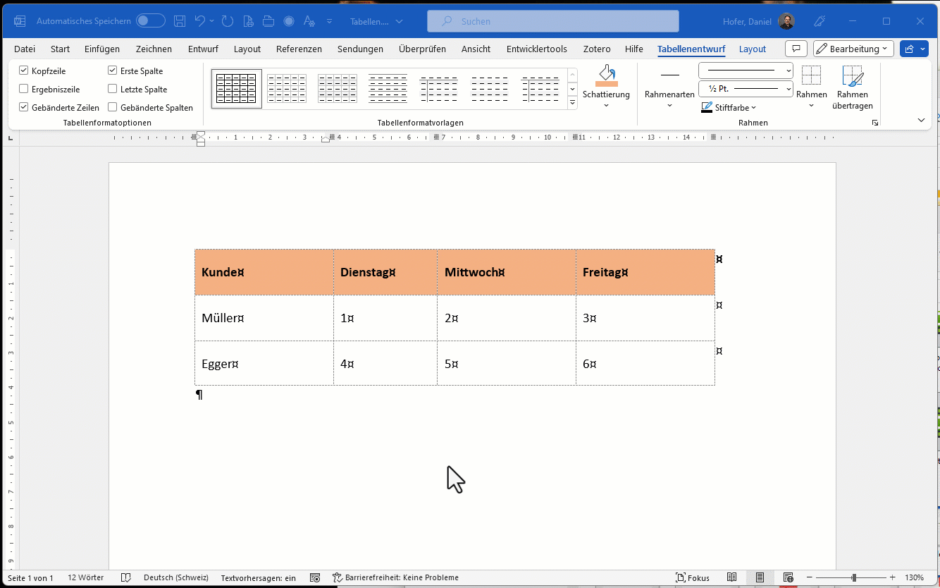- Verwenden Sie eine Tabelle als Gestaltungselement, dann nehmen Sie Word