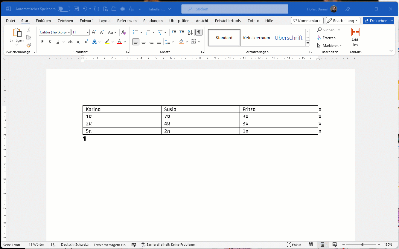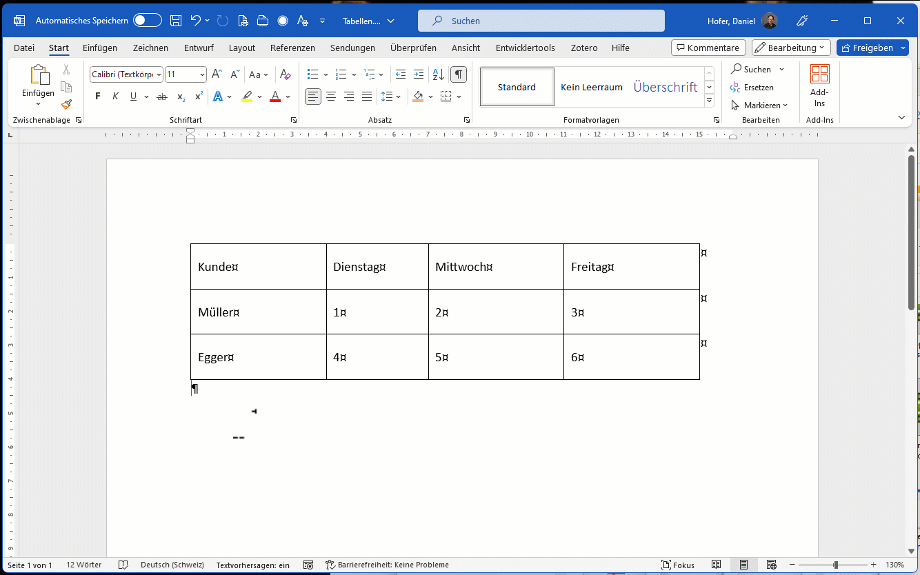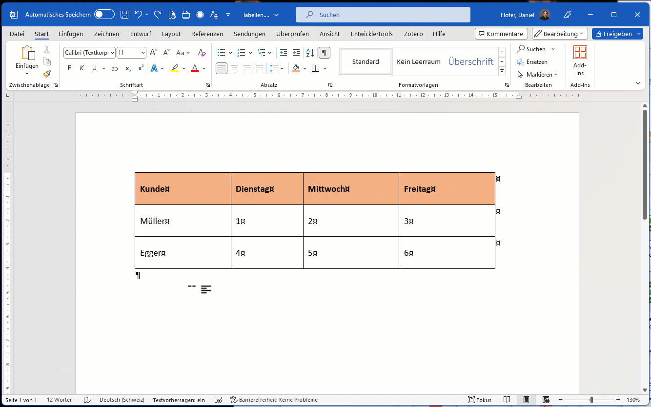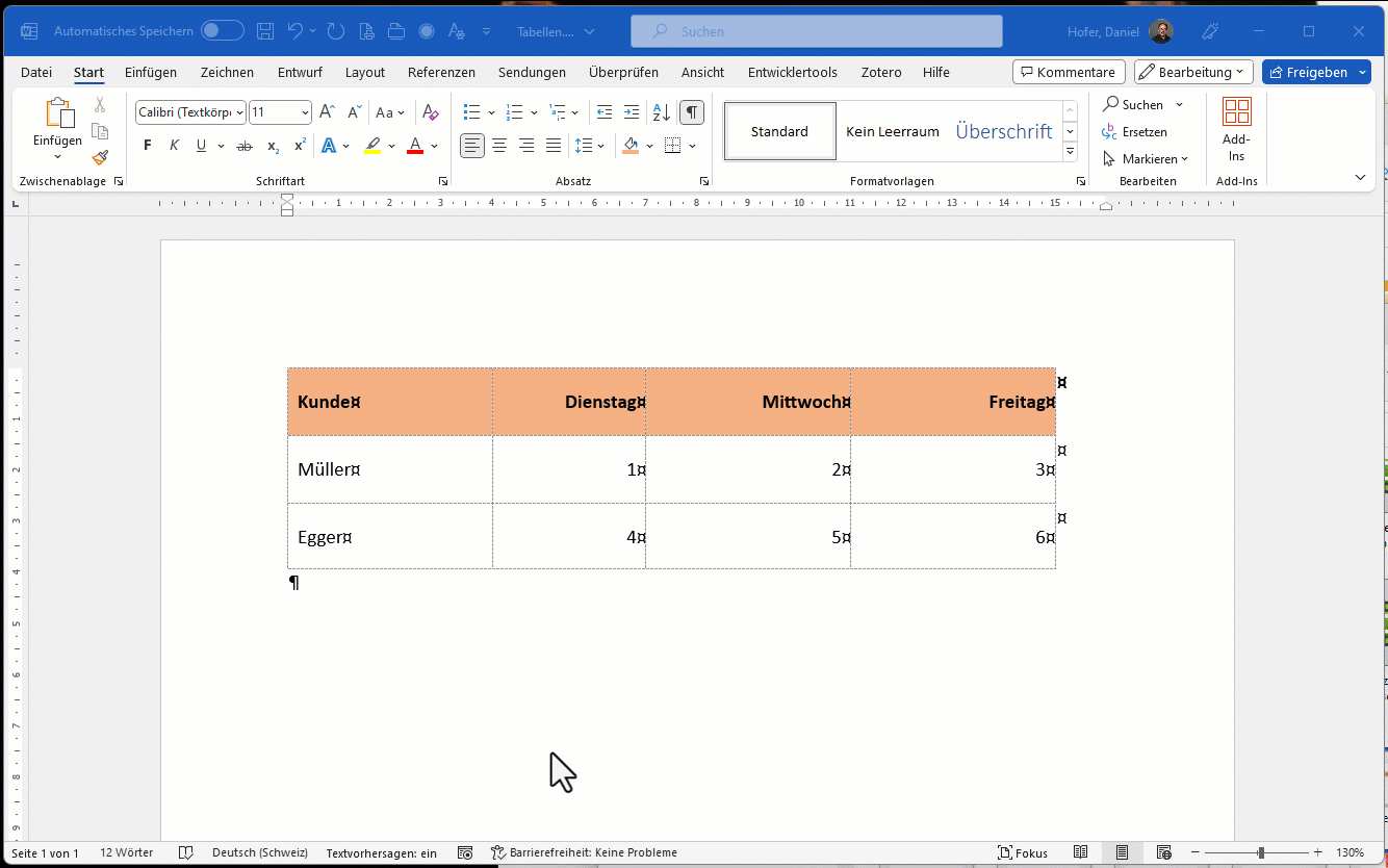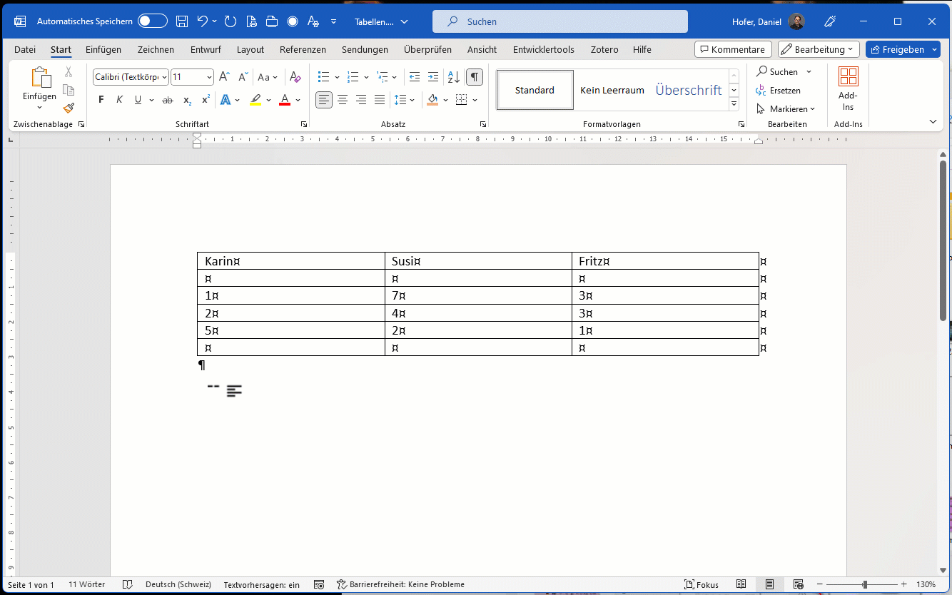 - Verwenden Sie eine Tabelle als Gestaltungselement, dann nehmen Sie Word