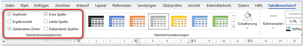 - Entweder arbeiten Sie mit Tabellenformatvorlagen