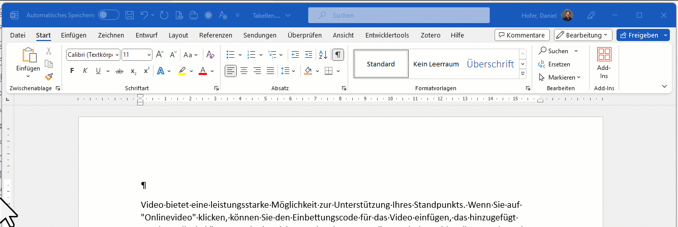 - Schliessen Sie Word mal komplett und öffnen es wieder mit einem neuen, leeren Dokument