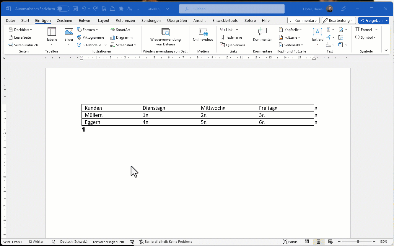 Tabellen einfügen