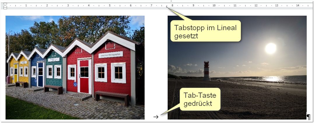 Das Problem liegt hier am Tabstopp im Absatz mit den beiden Beschriftungen. Deshalb ist diese erste Lösung nicht geeignet, wenn Beschriftungen nötig sind.
