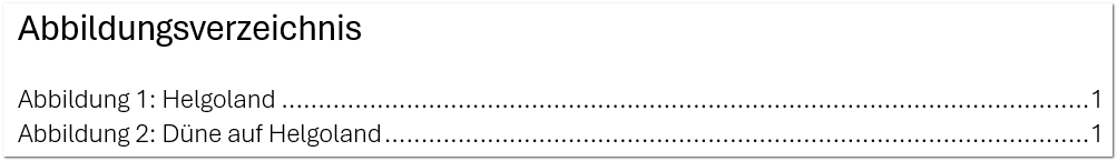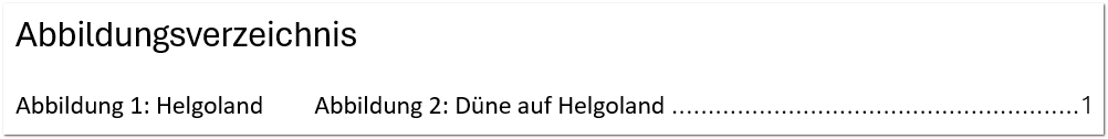 Aber sobald Sie davon ein Abbildungsverzeichnis erstellen wollen, gibt es Ärger. Das wird nämlich so aussehen: