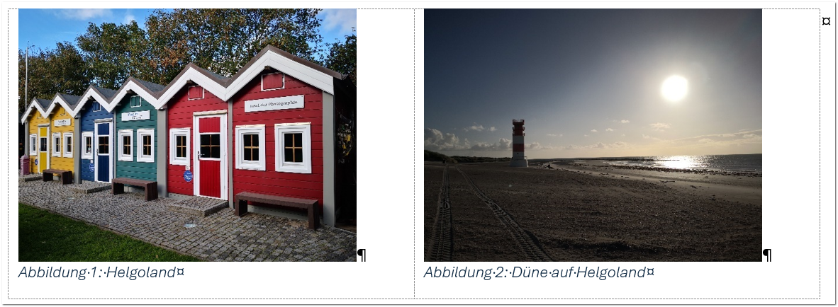 Ein weiterer Vorteil der Tabelle: falls Ihnen die Bildbeschriftung besser zentriert unter den Bildern gefällt, ist das auch ganz einfach zu lösen. Das könnte so aussehen:
