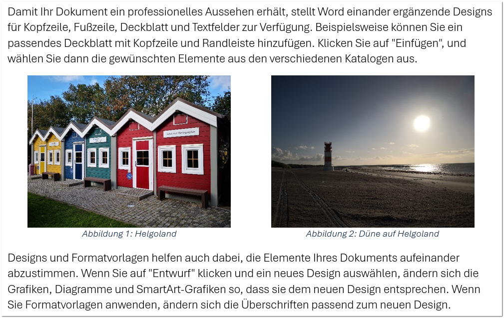 Grundsätzlich funktioniert dieses Vorgehen auch, wenn Sie eine Beschriftung bei den Bildern haben. Dann könnte das wie folgt aussehen: